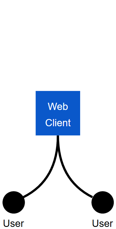 The app ships with a default web client, which can be swapped out for a custom one. Both interact with the public API.