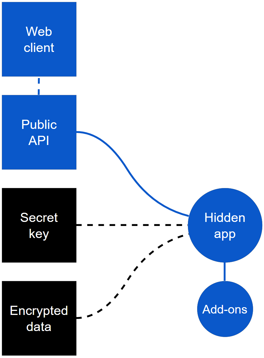 The public API serves as the unified point for all actions with the data. It operates only when the secret key is mounted.